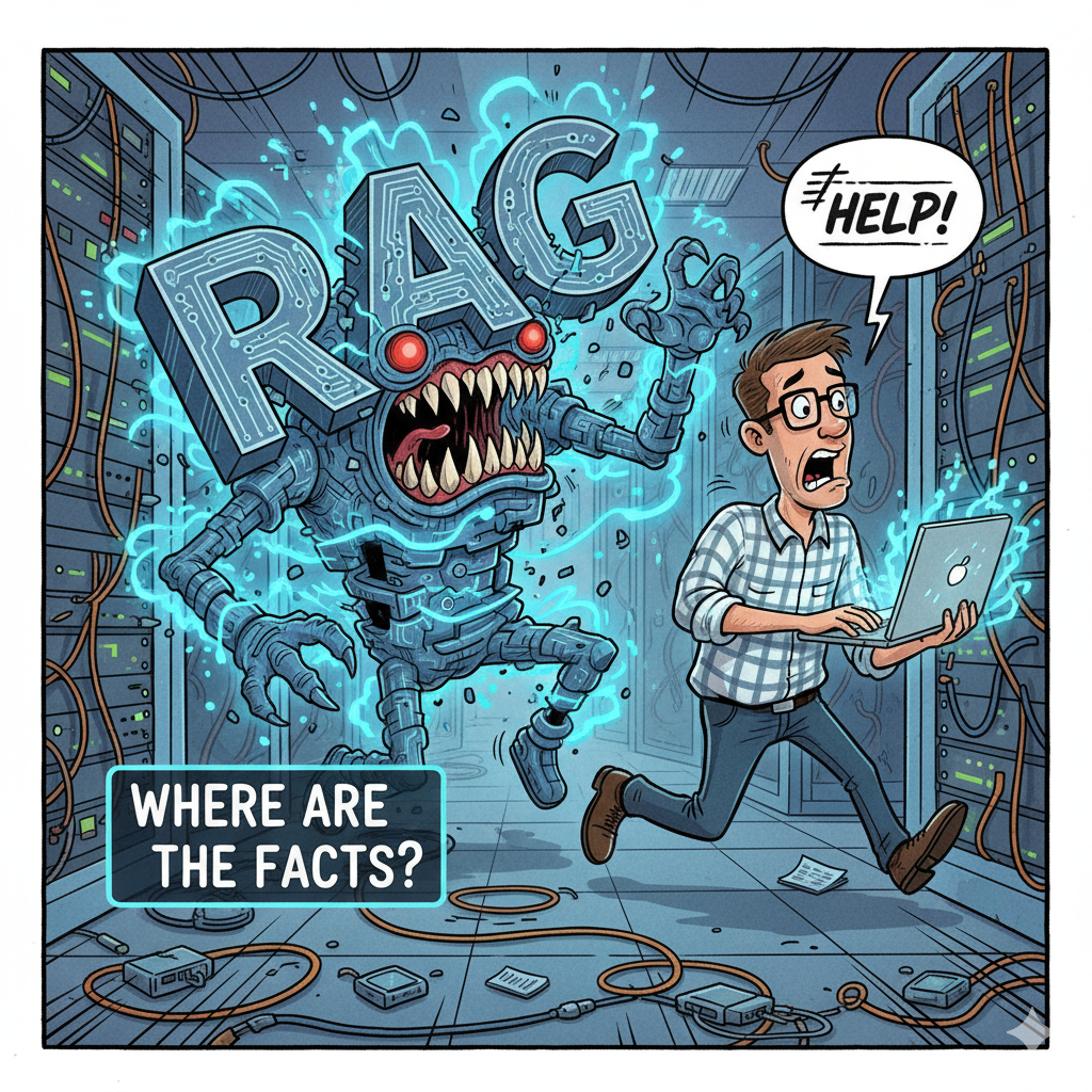 Więc odpowiadając na Twoje pytanie – RAG to jednocześnie metoda wyszukiwania i dostarczania danych w kontekście. System najpierw wyszukuje odpowiednie dane, a następnie dostarcza je jako jedyny dozwolony kontekst dla modelu, który generuje finalną odpowiedź. Ta architektura ma na celu ograniczenie „halucynacji” AI, ale, jak pokazał mój eksperyment, tworzy jednocześnie nowe, subtelne problemy.