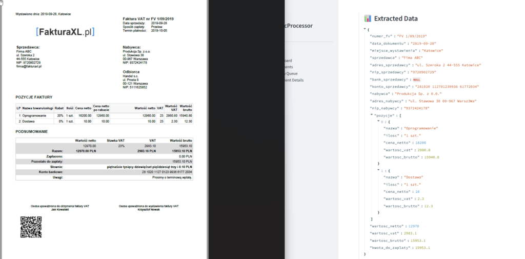 Przykład zczytania faktury z popularnego polskiego programu księgowego: