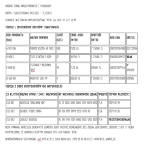 - Wyzwania: Tabele z danymi, kody EAN, statusy