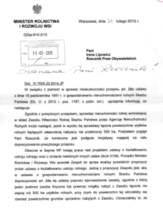 - Typ: Pismo urzędowe (Minister Rolnictwa)