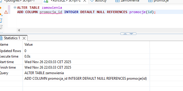Powyższy kod, zmienia tabelę zamowienia