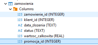 Wróćmy teraz do naszej bazy zamówień, i ostatnio dodanej tabeli z promocjami. Zakładamy, że promocje się nie łączą, i jedno zamówienie, może, ale nie musi być powiązane z jakaś promocją.